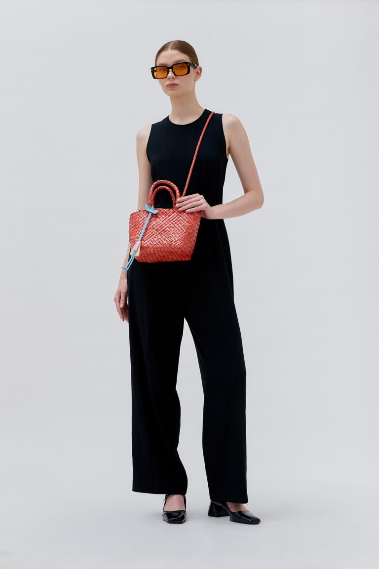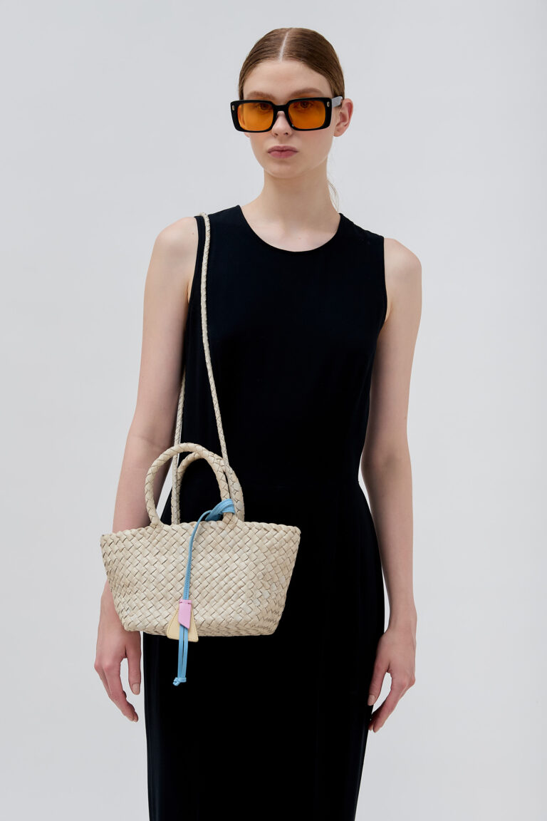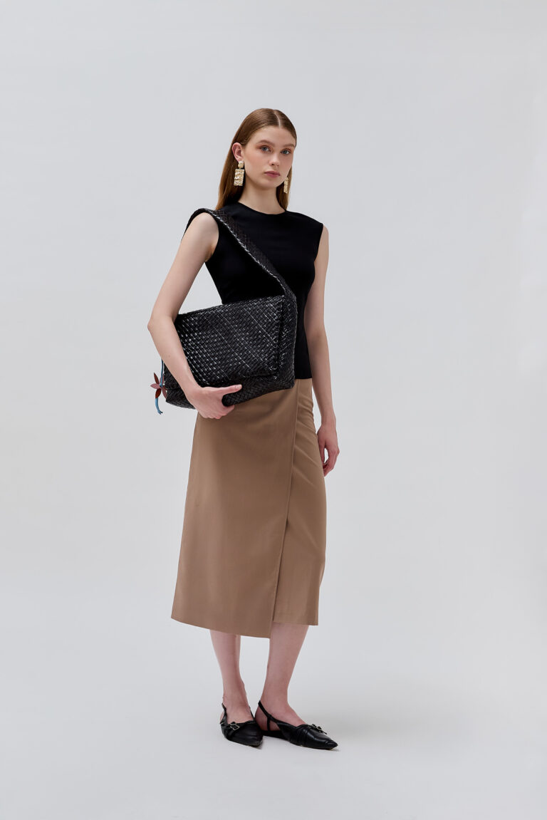 The Gaby Flo Tote in Large combines a generous scale with handcrafted texture. Defined by its woven artistry and structured leather form, it carries your daily essentials with grounded elegance.