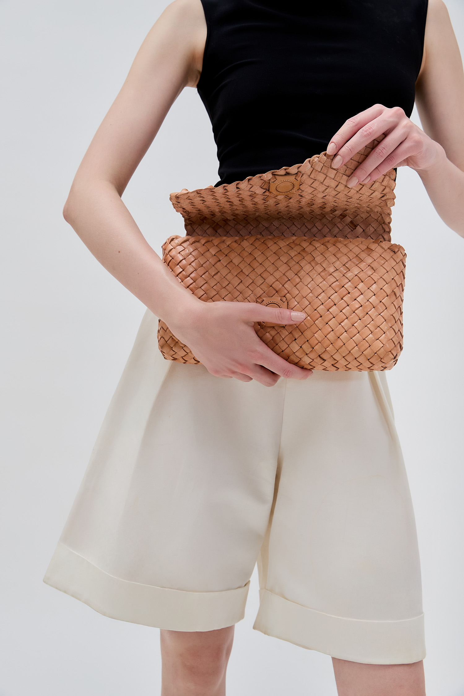 Stefania is a large, sleek clutch crafted from leather that is naturally tanned under the sun. With its unisex design and intricate woven texture, it reflects understated sophistication. Perfectly sized to carry your essentials, it serves as a refined statement piece for any occasion.